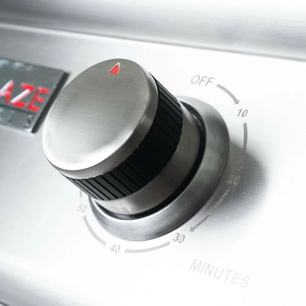 The Blaze Portable Electric Grill allows you to enjoy quality grilling in more places than ever. This 21-inch portable electric grill is built with a 304 stainless steel body and features a water-resistant design for safe use outdoors. The 274 square inch cooking surface reaches up to 749 degrees Fahrenheit and is evenly heated by a full-sized 1,500 watt heating element. 16-gauge 304 stainless steel flame tamers help prevent flare ups, evenly distribute heat, and vaporize drippings for extra flavor. Heavy-duty 9mm triangular stainless steel cooking rods allow for greater heat transfer to create impressive sear marks. A removable warming rack lets you keep bread and other foods heated while you grill. The heating element has a hinged design and can be lifted out, while an easy pull-out drip tray collects drippings for easy cleanup. The 304 stainless steel grill hood is double-lined to protect the outer layer from heat discoloration, keeping your Blaze grill looking shiny and new for years of use. Adjustable feet allow for steady placement on uneven surfaces. Safety features include a built-in 60-minute timer with automatic shut-off, and a heavy-gauge 7.5 foot power cord with built-in GFCI breaker. A dedicated 20 AMP circuit is recommended for best performance, however a dedicated 15 AMP circuit is also acceptable. This product is ETL certified.