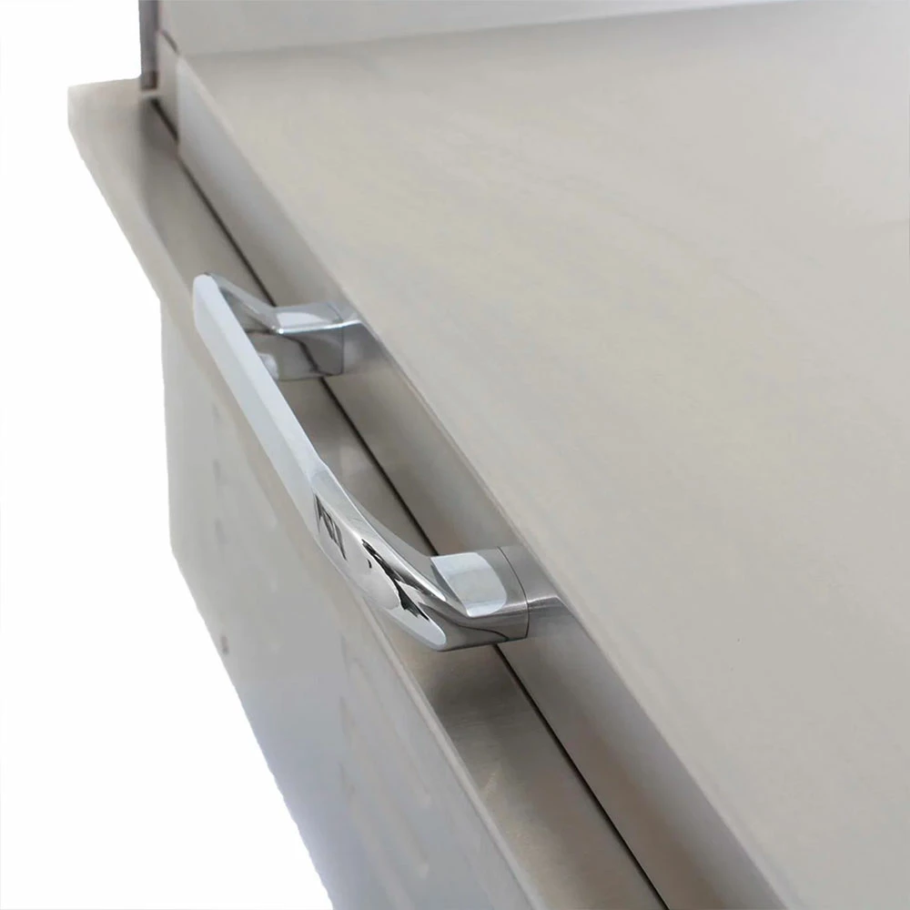 The freestanding LTE griddle from Blaze is designed to take outdoor entertaining to a new level, day or night with signature SRL LED control knob illumination, exclusive to Blaze LTE Series grills. The amazing versatility of the Blaze griddle allows you to cook up bacon and eggs, juicy hamburgers or sizzling fajitas with rice and veggies for the whole family. This Blaze Grills (BLZ-GRIDDLE-LTE-LP + BLZ-GRIDDLE-C) freestanding propane gas griddle is equipped with two commercial quality, 304 stainless steel U-shaped burners that each deliver 18,000 BTUs of cooking power for a total of 36,000 BTUs across the 495 square inch stainless steel cooking surface. Push and turn flame-thrower primary ignition, backup flash tube secondary ignition and cross tubes ensure a steady, reliable flame with every start. A large capacity grease trough with a hole in the center directs grease down to the drip tray below for easy cleaning. This freestanding griddle is constructed entirely from heavy-duty. 304 grade stainless steel for outstanding durability. The deluxe cart features a two drawers for storing grilling accessories and one large door for storing oversized accessories or a garbage can. While you are using the griddle, you can store the griddle lid behind the cart on the storage bracket. The bottom drawer includes a tray with seven individual, removable containers for keeping veggies or condiments conveniently nearby. The insulated drawer can be filled with ice to keep food chilled. It is also equipped with a drain for easy ice removal. The cart moves around easily on heavy-duty casters so you can move it around on the patio while entertaining. The Blaze freestanding griddle also carries an ETL certification. This product is ETL certified with an ANSI Z21.58-2018/CSA 1.6 rating.