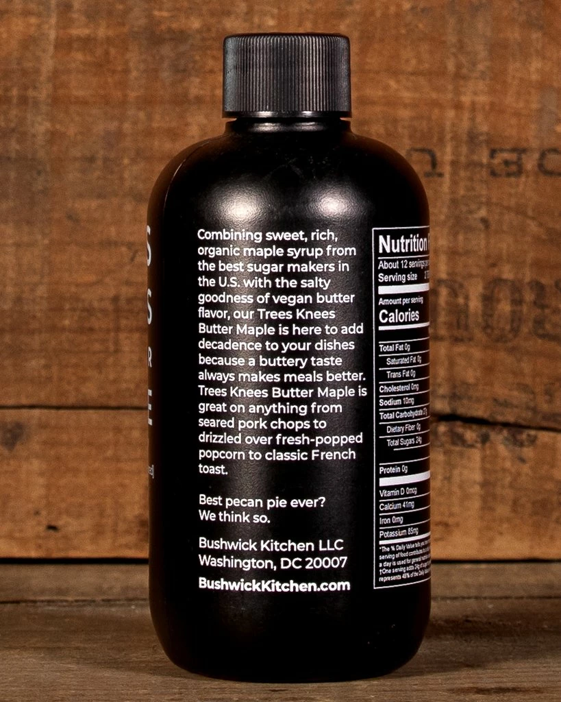 Combining sweet, rich, organic maple syrup from the best sugar makers in the U.S. with the salty goodness of vegan butter flavor, our Trees Knees Butter Maple is here to add decadence to your dishes because a buttery taste always makes meals better. Trees Knees Butter Maple is great on anything from seared pork chops to drizzled over fresh-popped popcorn to classic French toast.