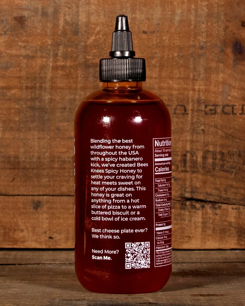 Blending the best wildflower honey from throughout the USA with a spicy habanero kick, we’ve created Bees Knees Spicy Honey to settle your craving for heat meets sweet on any of your dishes. This honey is great on anything from a hot slice of pizza to a warm buttered biscuit or a cold bowl of ice cream.
