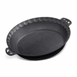 Bake delectable pies to perfection with a true-seasoned Cast Iron Pie Pan. Cast iron creates even heat distribution giving you a golden brown crust every time. Decorative handles have been added for convenience.