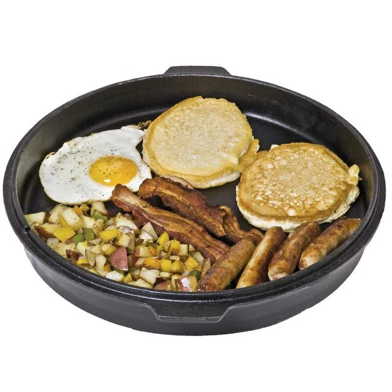 Cast Iron Dutch ovens are known for making some of the most delicious meals, from slow roasted meats to your favorite fruit cobbler. When cooking with this deluxe nine and one-third quart, 12-inch Dutch oven your menu will expand because the lid doubles as a full size skillet. Simply turn the lid over to cook eggs, bacon or pancakes, then replace the lid and start cooking your favorite potatoes for the next meal.