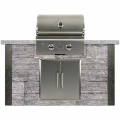 Coyote has partnered with RTA Outdoor Living and created one goal, to set out and remove the challenges associated with selecting, designing, and building an outdoor kitchen. RTA Outdoor Living has accomplished this by creating a unique building method that allows you to create an easy and affordable higher-quality alternative to conventional outdoor living construction. RTA Outdoor Living outdoor kitchen has simplified the construction process by using structural high-strength concrete panels (precast with a stone, wood or concrete face) that can be assembled in a few hours, with the help of a couple of people. In comparison, scratch-built and ready-to-finish (RTF) outdoor kitchens require multiple materials, steps, and trades to complete. RTA panels are self-supporting and aesthetic with no finish or masonry work required. Panels are simply set in place, attached with L-brackets and self-tapping screws, corners are mounted, countertop (included) and appliances are installed, and your outdoor kitchen is complete. RTA Outdoor Living BBQ islands are constructed of superior material technology. RTA Outdoor Living BBQ Island panels are approximately 3/4″ – 1 1/4″ thick and manufactured from a patented high-strength concrete composite with micro-fiber technology. Panels are engineered for outdoor environments, UV stable, virtually impervious to freeze/thaw cycles, and able to withstand all climates. The RTA Outdoor Living (RTAC-G5-WGLP) ready-to-assemble 5-foot outdoor kitchen island fits Coyote’s C-Series 28-Inch 2-Burner Built-In Propane Gas Grill (Model# C1C28LP) and Coyote’s 26-inch Stainless Steel Double Access Door (Model# CDA2426). Stone gray weathered wood proprietary concrete island frame with distressed gray 1 1/4-inch thick chiseled-edge concrete countertop. Products shown must be purchased separately, the price listed is ONLY for the BBQ Island, no components are included.