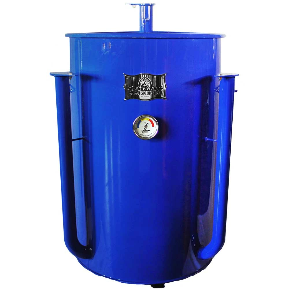 The Gateway Drum Smokers Sizzle Edition features the incredible American-made construction with the new addition of four(4) new glossy colors. Designed to maximize the flavor, moisture, and tenderness of your backyard cookout, the Gateway Drum Smoker 55 Gallon 55144 offers competition-grade performance and versatility in a user-friendly design. This award-winning 55-gallon drum smoker is American-made and built from solid steel and comes fully assembled with welded components for supreme efficiency and durability. The drum is finished in gloss royal industrial quality paint that can withstand temperatures up to 1000 degrees Fahrenheit. Whether cooking hot & fast or low & slow, the Gateway Drum Smoker gives you total temperature control thanks to dual adjustable air intake pipes and an adjustable top exhaust pipe. A center-mounted 3-inch custom dial thermometer displays temperatures, inside the barrel, from 100 to 500 degrees Fahrenheit so you can smoke, grill, sear and bake juicy, fall-off-the-bone meals in as little as 2-4 hours. The included 21 1/2-inch stainless steel cooking grate provides 462 square inches of cooking space inside the barrel and can be mounted in three different cooking levels using grate pegs welded inside the drum, or you can add up to 2 more cooking grates for a maximum capacity of 1,386 square inches (available for purchase separately). A removable, high-capacity fire basket holds 8 to 10 pounds of natural lump charcoal and allows for up to 14 hours of no-fuss burning! A hanging hook inside the smoker lid lets you store it on the side of the grill for added convenience. Take things on the road for competition and tailgate cooking, or entertain family and friends in the backyard with a lightweight design featuring removable caster wheels and welded-on handles for easy mobility. Add on optional accessories like the Gateway Drum Smokers heat diffuser plate, rib hanger kit, extra cooking grates, and side tables for even more versatility and convenience.