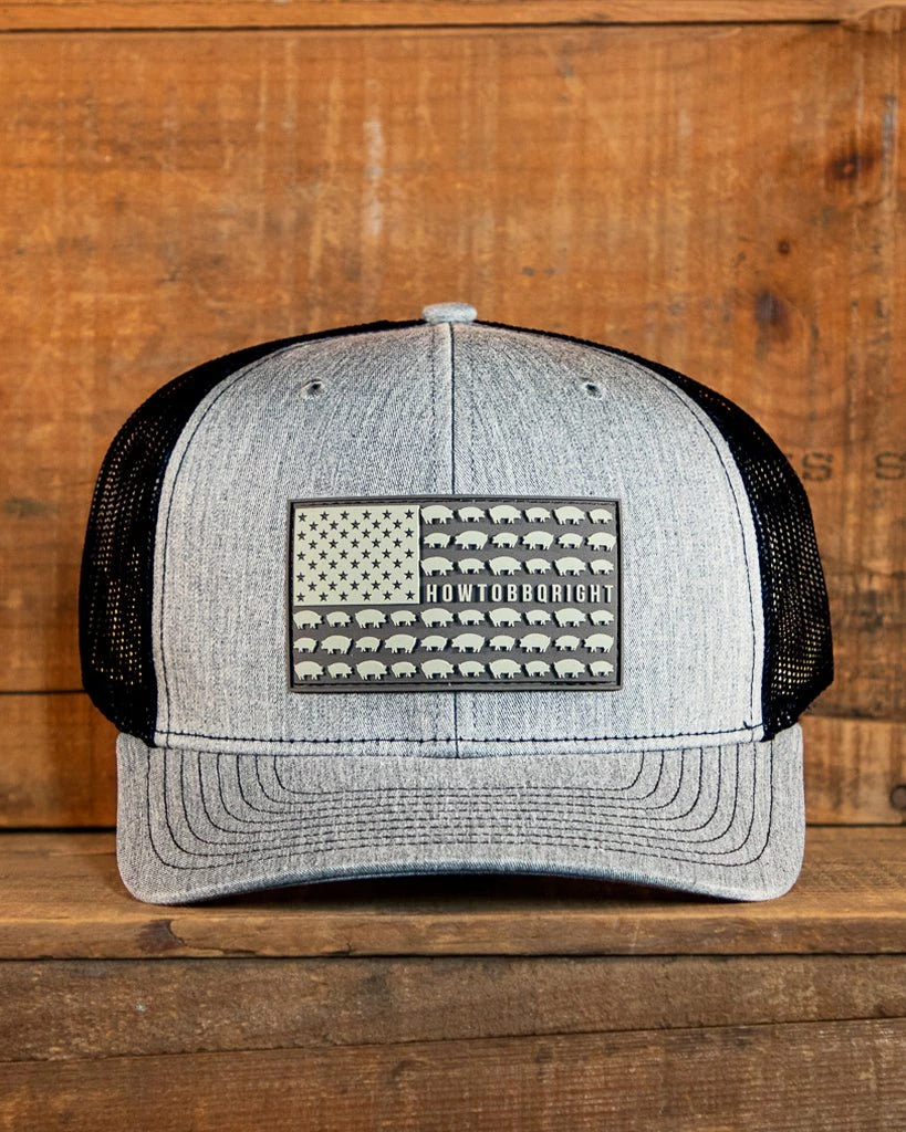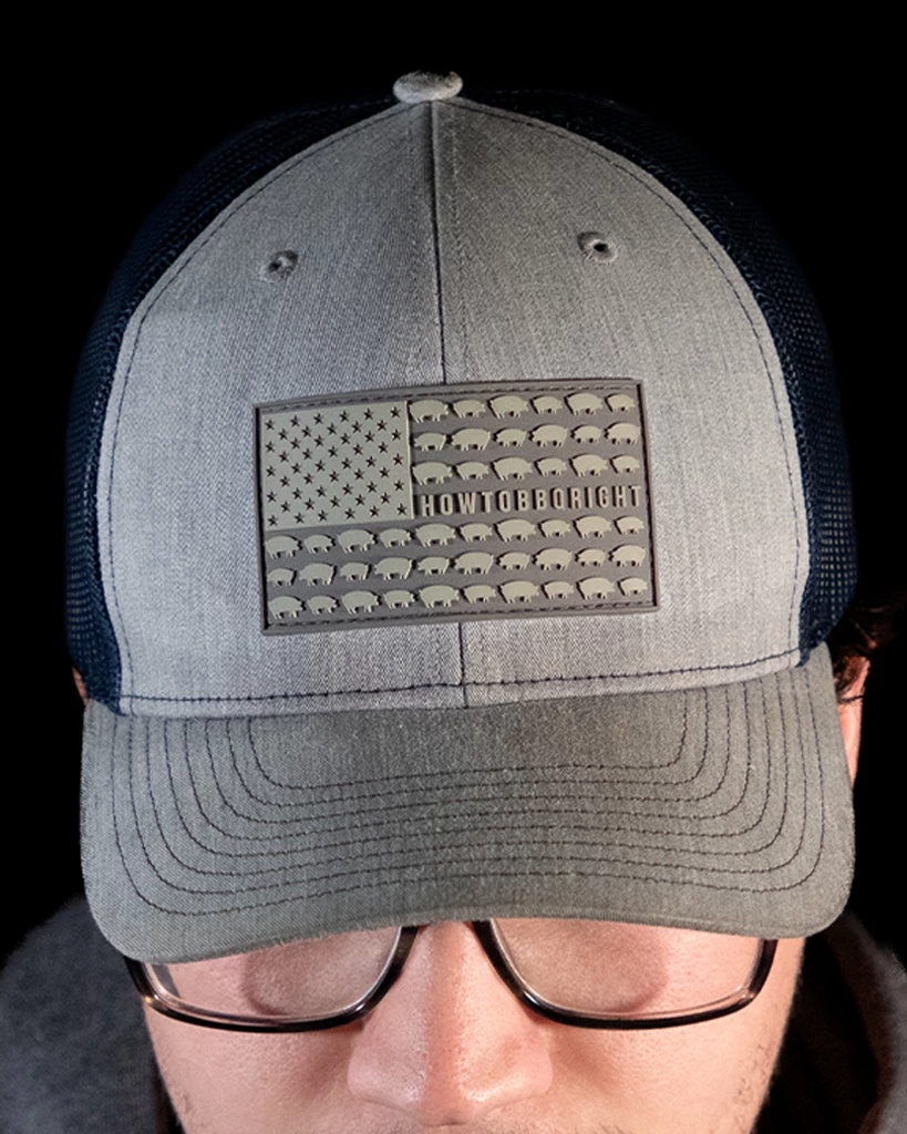 Our *NEW* heather gray and navyย HowToBBQRightย Hog Flag Hat features our pigย onย our custom PVC emblem. This hat is awesome:ย