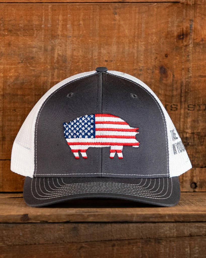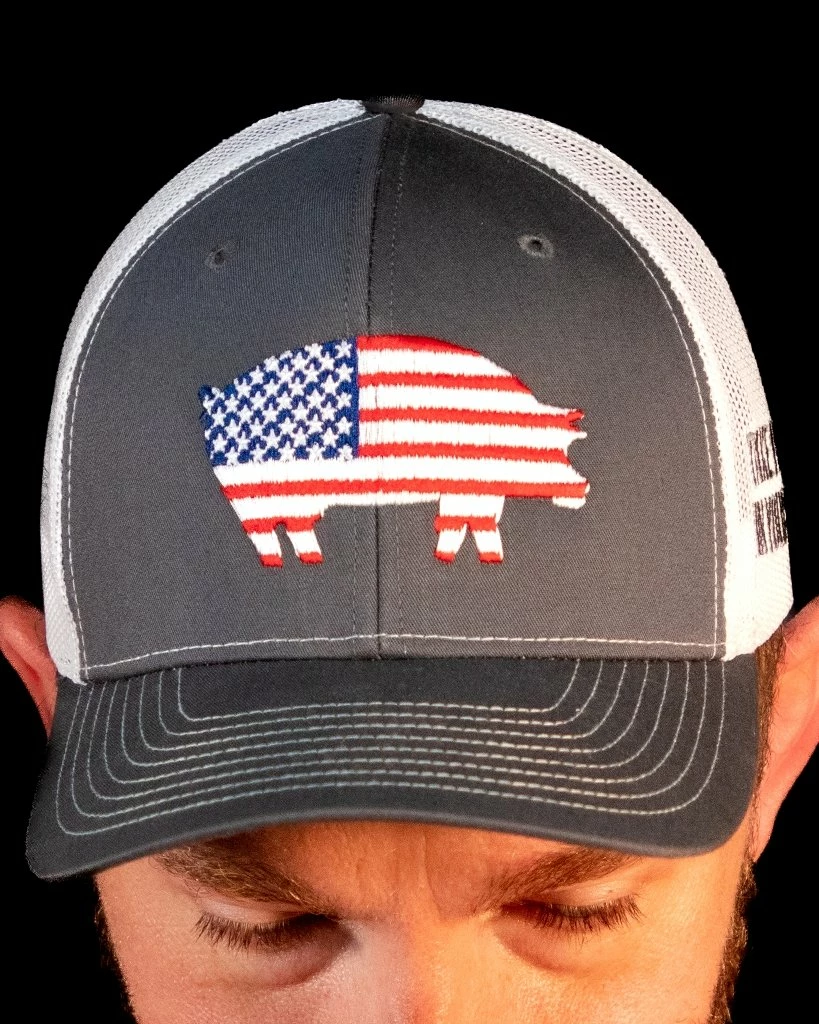 Our Killer Hogs American Hog Hat features our Killer Hogs pig in Stars and Stripes.