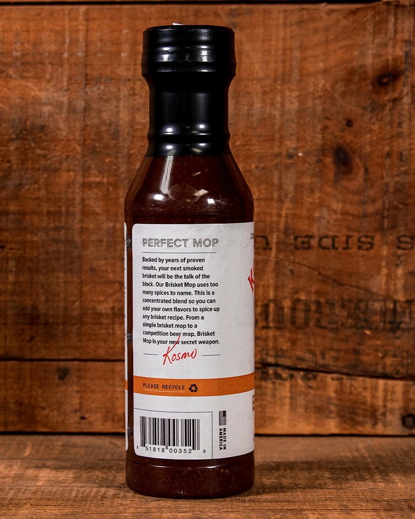 Kosmo’s Q has concocted the perfect brisket mop. With years of proven results behind our product, your next smoked brisket will be the talk of the block. This is a concentrated blend so you can add your own flavors to spice up any brisket recipe.