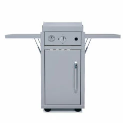 Enjoy the benefits of healthy, French-style griddle cooking with the freestanding Le Griddle propane gas griddle. Featuring a professional-style 304 stainless steel griddle surface and components, the Le Griddle 16-inch propane gas Wee Griddle offers excellent heat distribution thanks to a 1/2-inch thick enameled cast iron sub-plate below the cooking surface. A 304 stainless steel U-shaped burner provides 9,000 BTUs of even heat across the entire 1/8-inch thick stainless steel cooking surface. The easy-to-use push-button electronic ignition system is powered by a single AA battery and features a safety valve and thermocouple to automatically cut off the gas supply in case the flame is extinguished. Ventilation cutouts allow proper airflow to prevent gas buildup and overheating, but the internals and cooking surface are well protected from wind interference. Cleanup is easy with the removable griddle plate and grease collection tray, designed to capture oil and fat for simple disposal. The portable stainless steel cart offers mobility with four locking caster wheels. It features two folding sides shelves for extra prep space and a secure storage area inside the cart with a handy propane tank holder. The Wee Griddle ships are configured for propane gas and easily convert for use with natural gas using the included conversion kit and instructions. This product does not include a propane gas regulator or hose. The stainless steel lid is available separately.