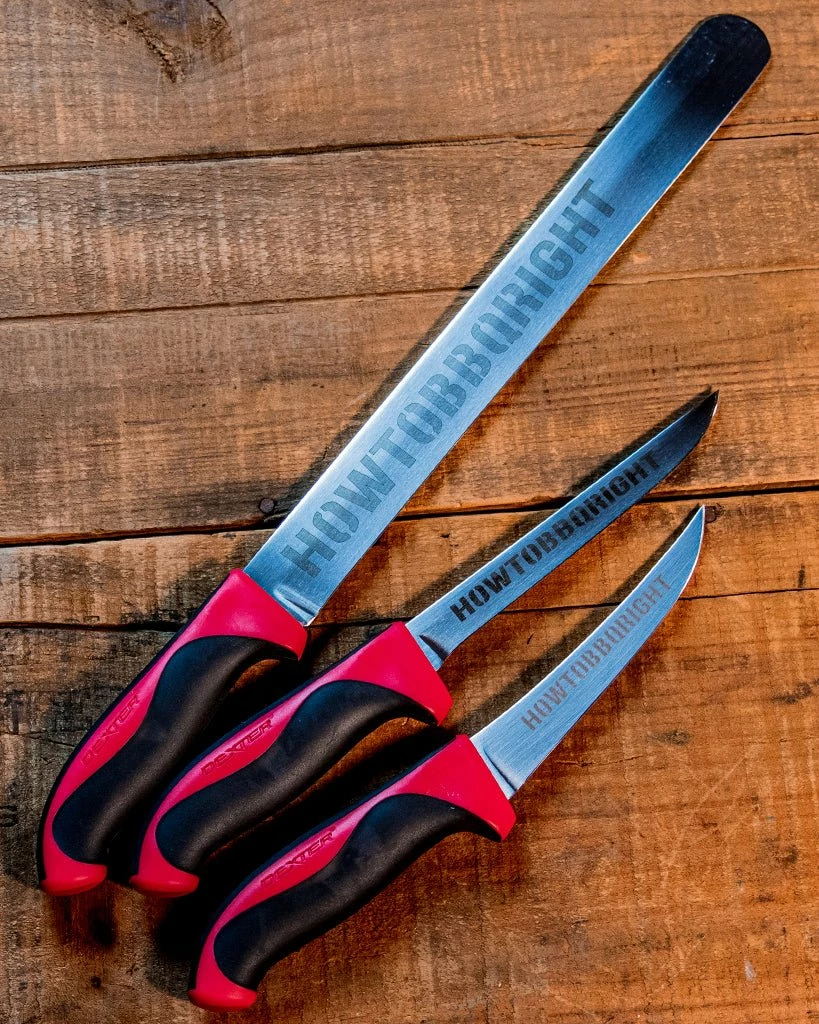 This set is three pack of our custom, red handle Dexter Russell HowToBBQRight knives: