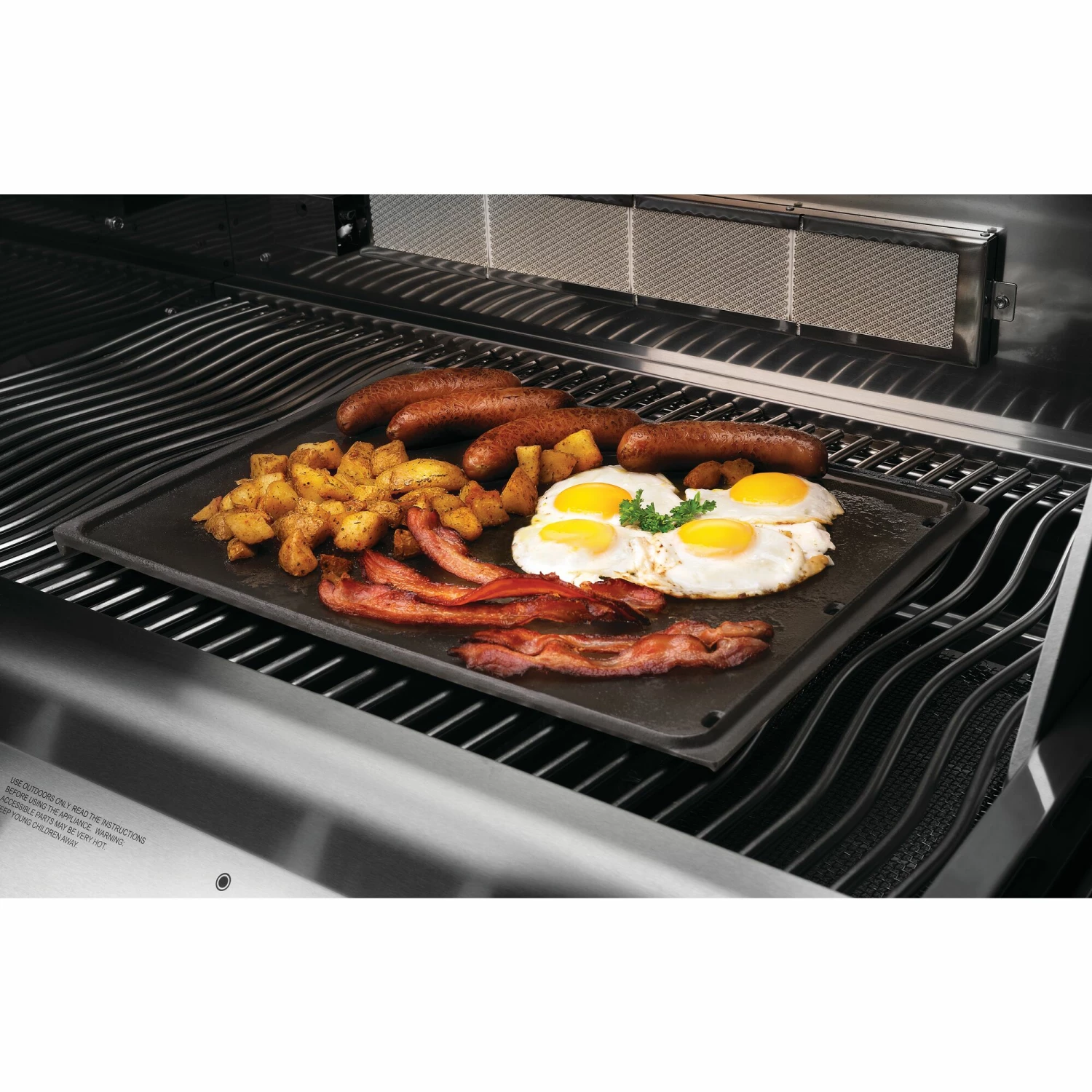 The Napoleon Reversible Cast Iron Griddle is the perfect addition to your outdoor kitchen. Turn your grill into a breakfast station. Caramelize onions while you cook your burgers. Grill your favorite sandwiches, Panini style, on the reverse side of the griddle. The possibilities are endless for the Reversible Cast Iron Griddle. Season it like you would your grandmother’s cast iron frying pan, the black cast iron with porcelain coating gets better every time you use it. The convenient little holes in the top allow grease to drain away from your food for the crispiest bacon, and succulent sausages. Get the Reversible Cast Iron Griddle to take your already amazing Napoleon Grill to the next level. Clever, multifunctional and easy to maintain, every kitchen benefits from the addition of a Napoleon barbecue accessory. Our accessories provide you with the essentials to create delicious grilled food and then some to enhance your cooking arsenal with a wide variety of creative additions to broaden your culinary horizons.