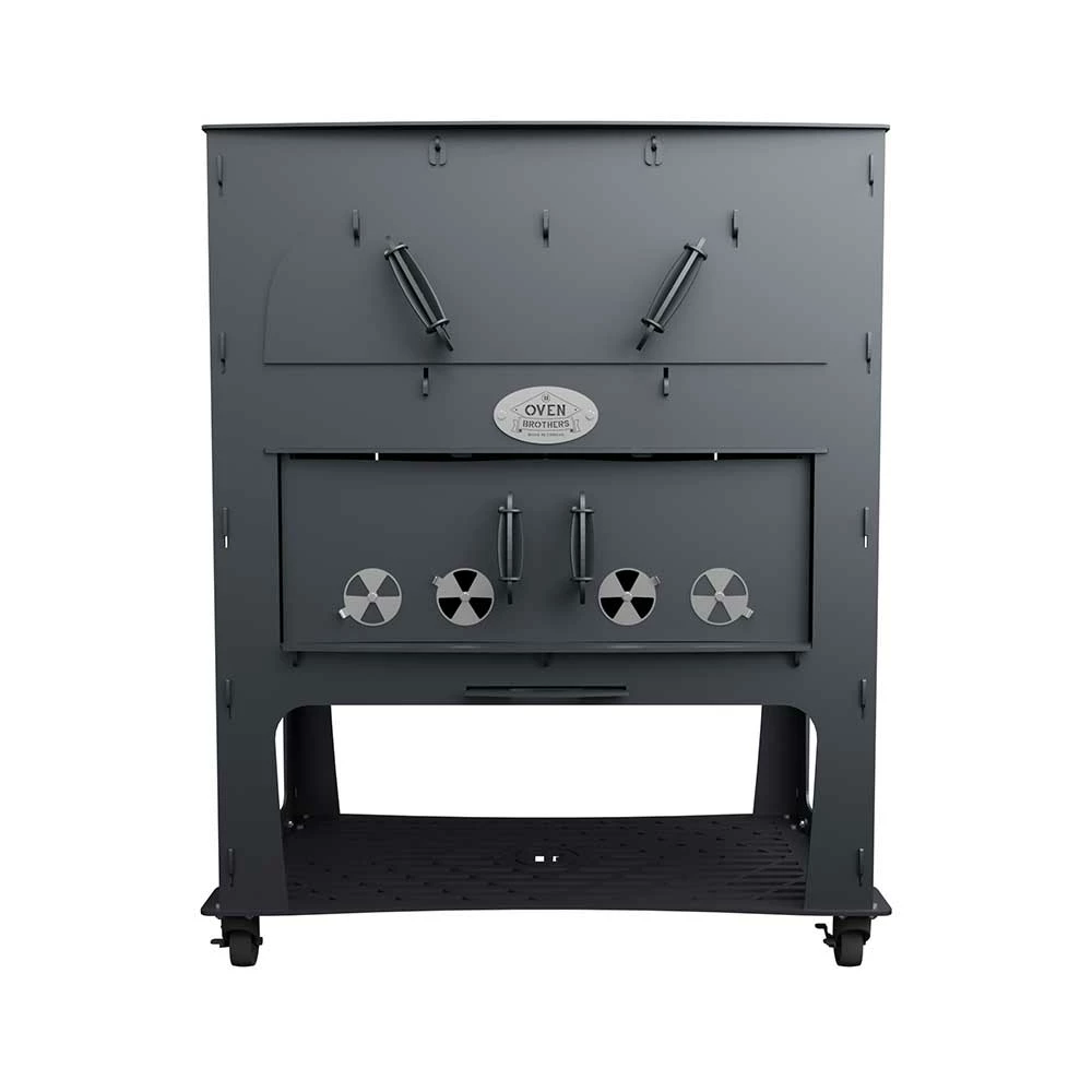 The patented no tools assembly wood-fired oven design allows for a more heat-efficient cooking surface than other traditional outdoor stone pizza ovens. Using thick high-quality carbon steel that has been CNC laser cut along with high-quality fire brick results in an oven that will outlast the competition, retain more heat, burns less fuel, and requires minimal to no maintenance. Did we mention that you can disassemble your oven and take it with you? The Oven Brothers “The Big Bro” series is the first-ever “flat packed” high-quality carbon steel outdoor wood-fired pizza oven of its kind. With its easy assembly, and the ability to be taken with you when you move; our ovens will last a lifetime. The Oven Brothers Big Bro pizza oven is a workhorse oven for the family that loves to entertain and wants to look good doing it. With its 31-inch width by 20-inch depth by 6-inch height cooking space, you can cook anything from a 20-inch pizza to dinner rolls and dessert for your next family BBQ. Customize your oven with high heat paint or leave it to patina naturally. Not only does it give you that industrial look, but it can also cook up to ninety (90) pizzas an hour (1). A two-person approach to assemble our ovens is recommended. We proudly achieved a “no tools, no hardware” assembly process with our unique interlocking design allowing for an assembly time of an hour and a half or less. Plus, it comes with a custom wheel kit which allows for greater mobility & versatility.