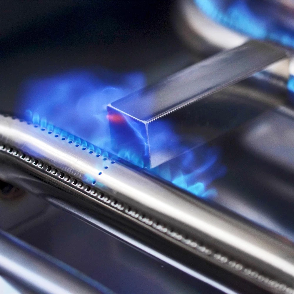 Designed to withstand the rigors of daily use in commercial settings such as apartments, condos and resorts, the PGS T-series is engineered with strong, durable materials while featuring a simple design that is easy to use. This PGS 51-inch built-in propane gas grill boasts a 304 grade stainless steel exterior and four heavy-duty stainless steel burners that push 102,000 BTUs of total cooking power on the grilling surface. The new, heavy duty, 16 gauge 304 stainless steel flip baffle grates offer even heat and perfect smoke control with low maintenance and no ceramic briquettes to replace or maintain. The 5/16 inch stainless steel rod cooking grids with Vari Grid spacing offer cooking versatility across 960 square inches of main cooking area. The battery powered, continuous spark electronic ignition means that lighting your PGS grill is quick, easy, and safe. The control panel features laser-etched instructions, anti-theft control knobs and a built-in one hour FuelStop gas flow timer. ETL/INTERTEK Approved.