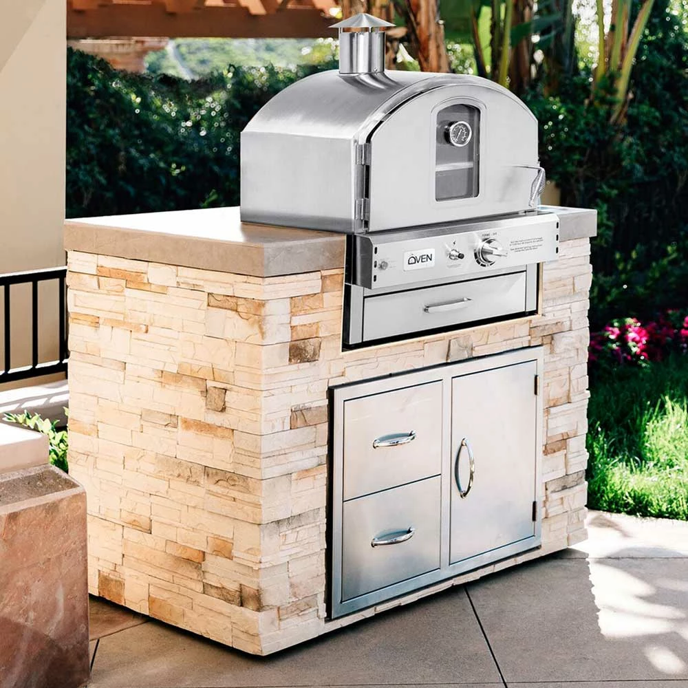 Offering the best portable and freestanding gas pizza ovens on the market at the best price point, there’s only Summerset Grills. The Summerset Grills SS-OVBI-LP is capable of being a built-in or countertop application, this pizza oven will give your guests something to talk about. With three removable cooking racks, the SS-OVBI-LP possibilities are endless. The large oven capacity allows you to bake 16-inch pizzas, bread, desserts, or even a turkey up to 20 lbs. The Summerset Grills SS-OVBI-LP features a full view front window and built-in halogen lights that allow you to easily view the temperature gauge or monitor the baking process. A heat diffuser over the 16,000 BTU circular burner evenly distributes heat for the perfect cook. The built-in drip tray makes cleaning and breeze and a heat resistant handle on the hood keeps the grip cool for safe oven access. Constructed of 304 stainless steel, this pizza oven is sure to last.