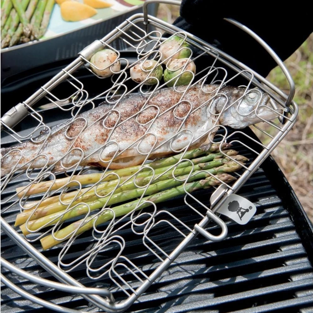 Get the most out of your grill with Weber Original accessories that are a must-have for every backyard cookout. This Weber fish basket keeps fish from sticking to the grates, and it is adjustable to hold a variety of other food. The basket is dishwasher safe for easy cleaning and fits Weber Smokey Joe and larger charcoal or gas grills.